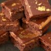 The ultimate brownie! Our chocolate luxury brownies with a caramel layer, finished with a dark chocolate ganache and gold leaf. You will never find a more decadent brownie – it really is gold standard!